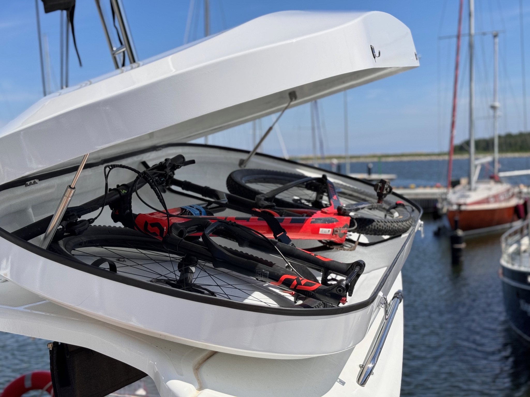 Water-resistant cargo boxes designed for sailing and yachting. Engineered to safely carry sports equipment and supplies.